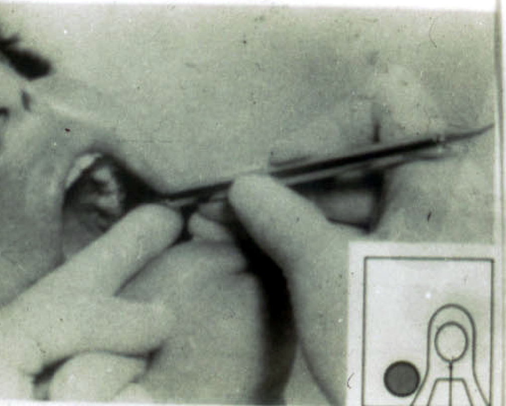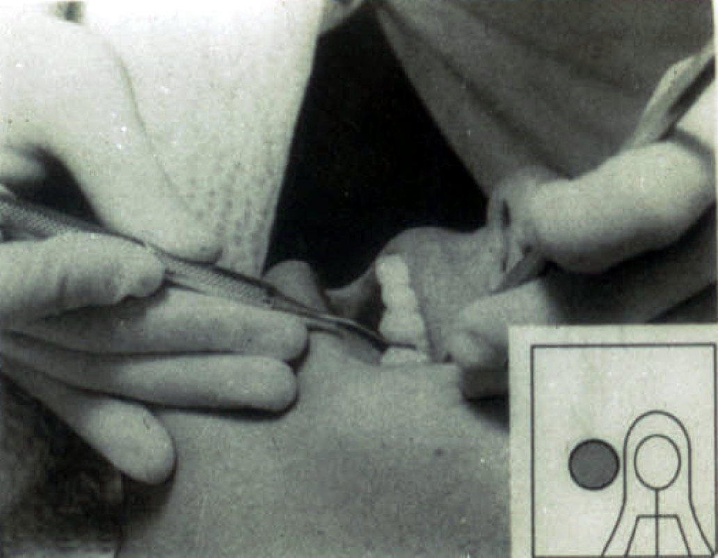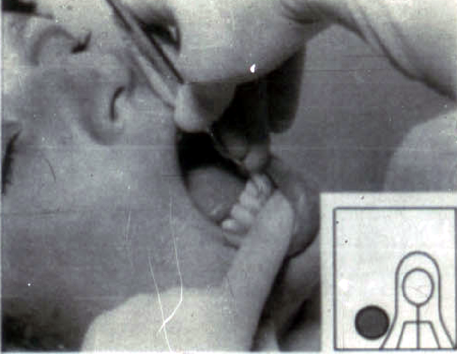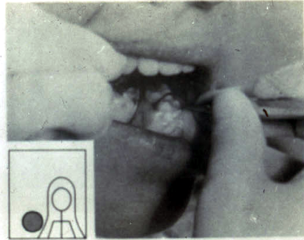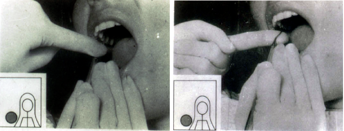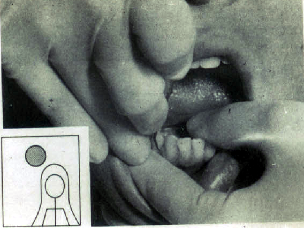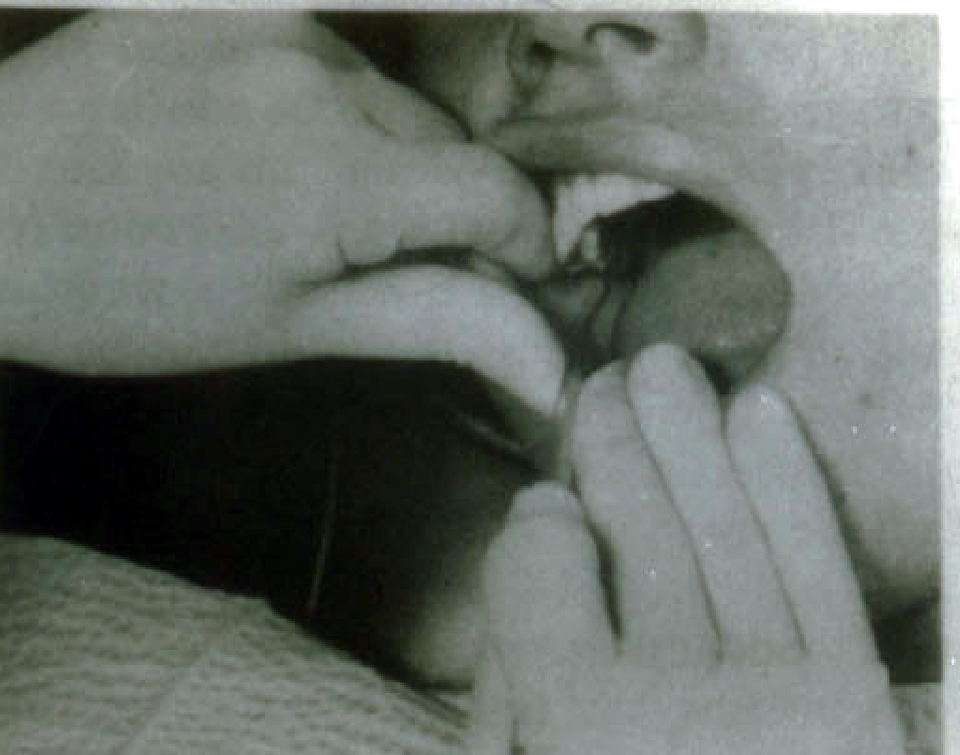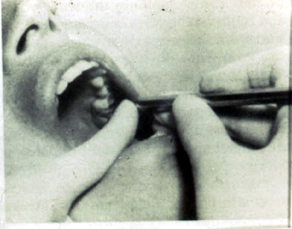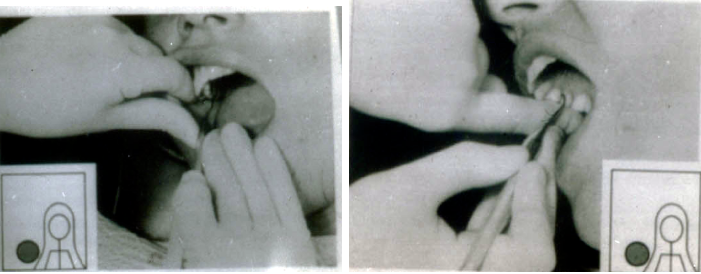 左手手指除可作附加支点外,尚可牵引唇颊部,以暴露视野。