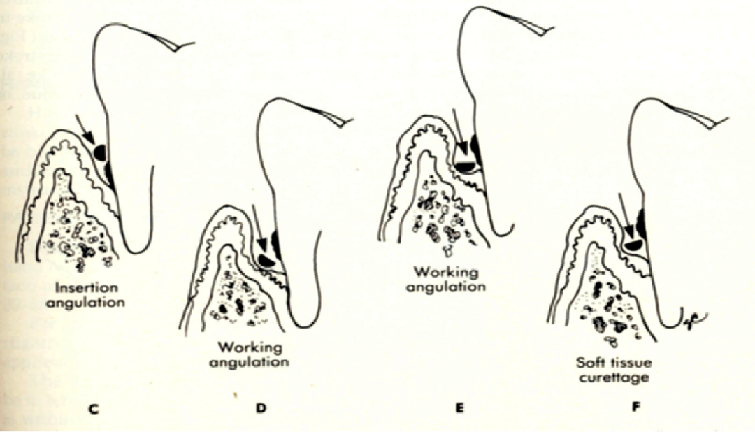 五、匙刮在牙周袋内操作时,刃部与牙面之间角度的改变