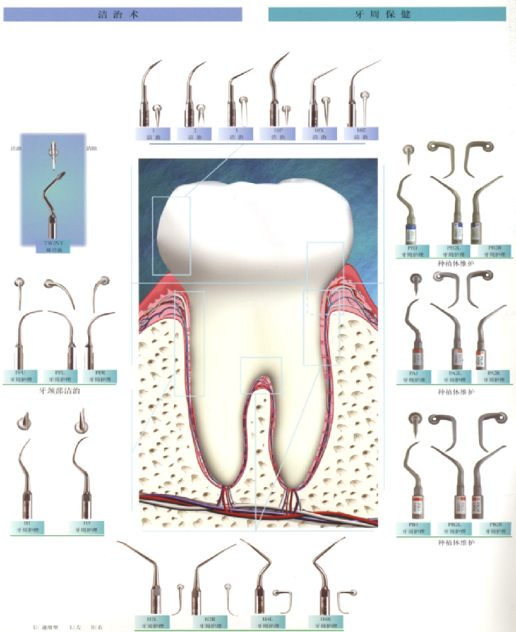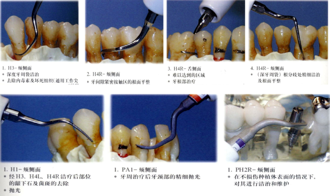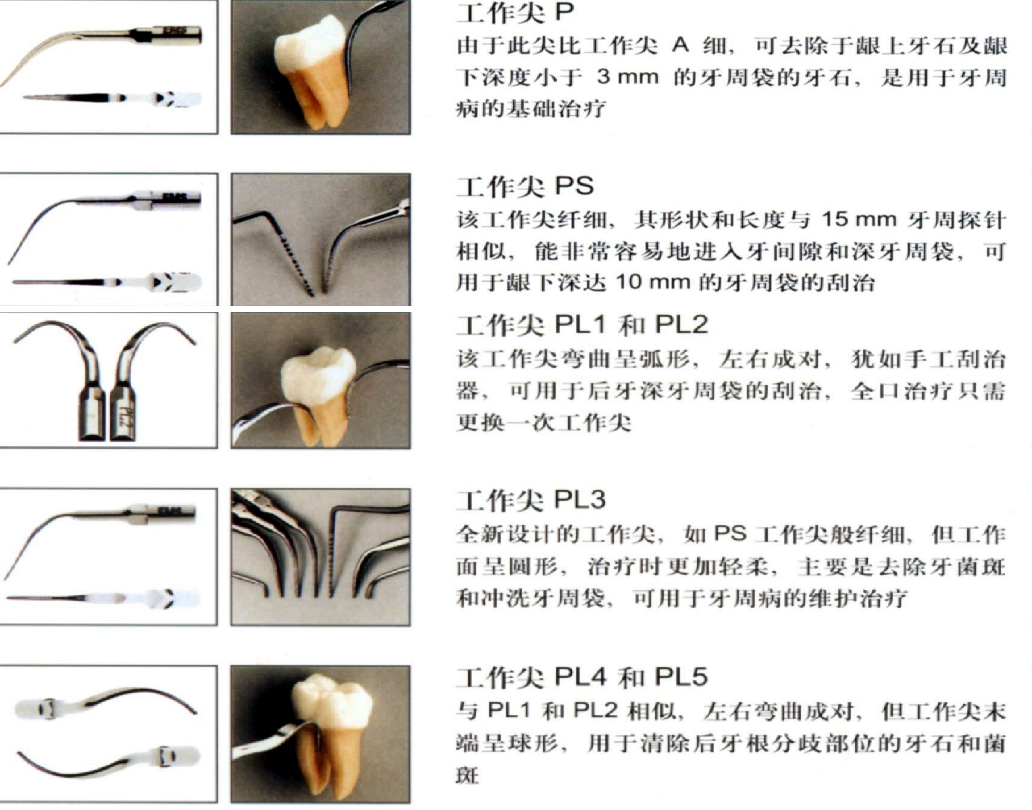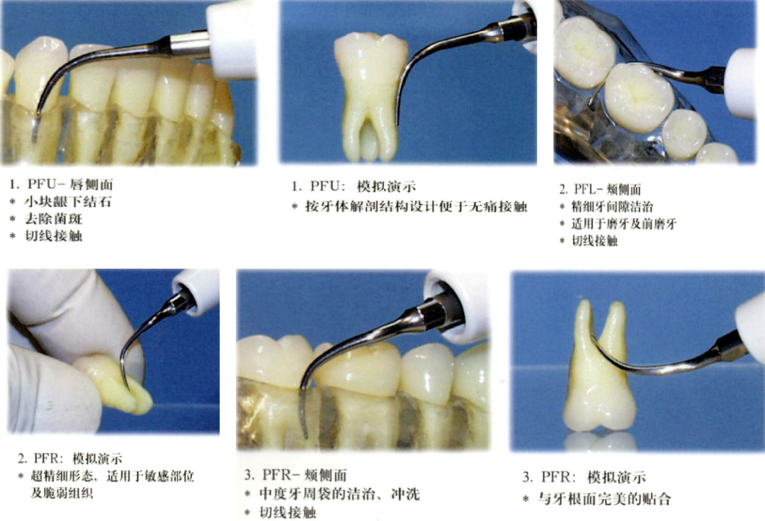 2、刃部插到牙石底部、结合上皮冠方时,刃部切割缘与牙面呈45°-90°角。