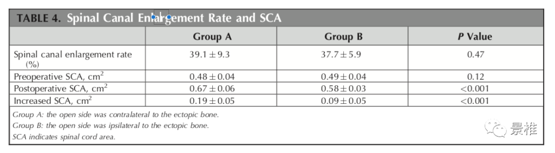 不同开门侧对椎管面积扩大也没影响。唯独术后JOA恢复率、脊髓面积增大方面,对侧优于同侧开门。