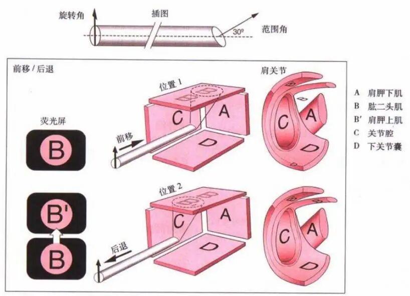 神经间平面位于小圆肌(腋神经支配)和冈下肌(肩胛上神经支配)之间(见图4)。