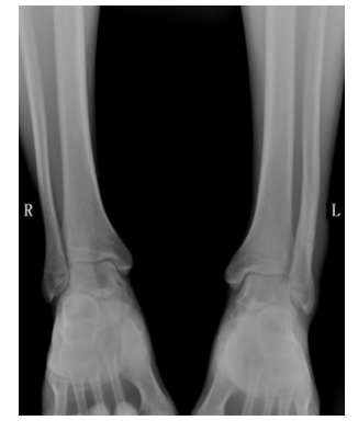 Ⅲ级:胫骨远端前方骨赘合并距骨颈部骨赘