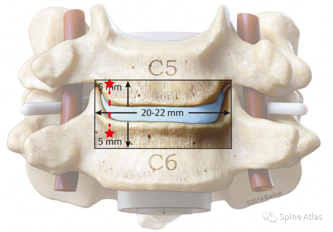 1,显露好后,用血管钳夹住颈长肌进行节段定位,定位好后,在椎间盘层面潜行剥离颈长肌,显露出钩椎关节,因为上终板一般为弧形,下终板一般为平坦。上位椎体的下终板(需要咬除上位椎体的下终板的弧形骨缘,可以直视到下终板),下位椎体的上终板(充分潜行剥离颈长肌,显露出钩椎关节),钩椎关节转角处是置钉的外侧界限。