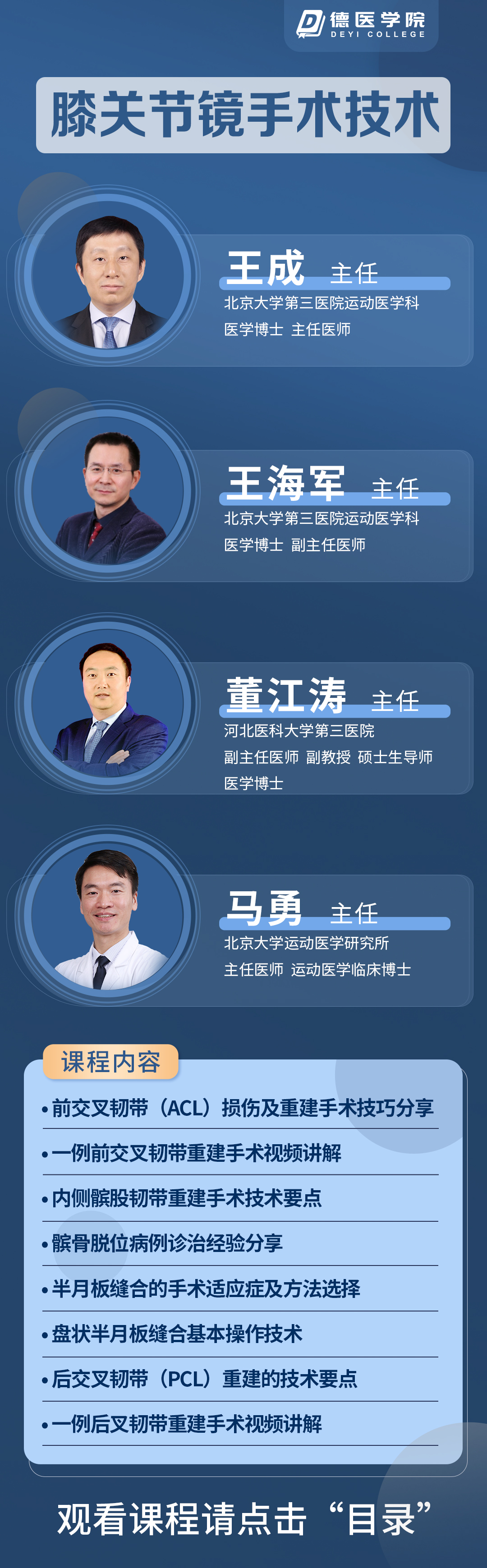 膝关节镜手术技术线上专题精讲班--王成、王海军、董江涛、马勇