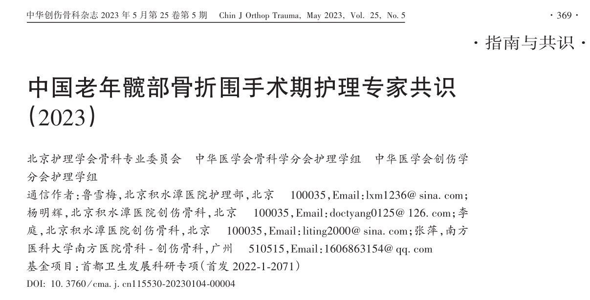 中国老年髋部骨折围术期护理专家共识(2023)发布