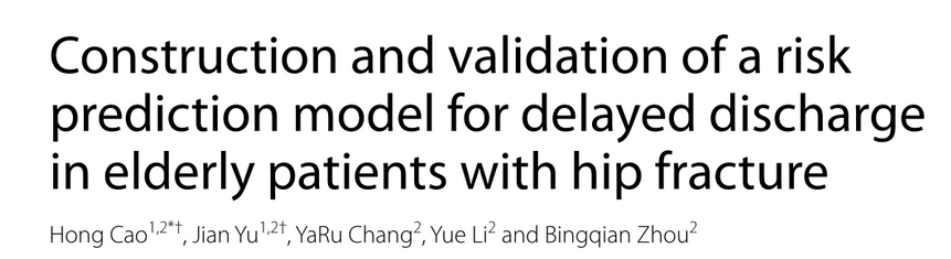 BMC Musculoskelet Disord:老年髋部骨折患者延迟出院风险预测模型