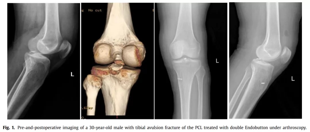 胫骨后叉止点骨折可分为三型,I型为无移位骨折,通常可保守治疗,对II型和III型移位骨折,通常采取手术治疗,以恢复膝关节稳定性。 关节镜下Endobutton固定后叉止点骨折因其微创、固定有效等优点,已成为治疗的首选。但关节镜手术技术要求高,因此,有学者采用自制钩钢板切开复位固定后叉止点骨折,取得了良好效果。结果发表在2021.07 Injury期刊上。