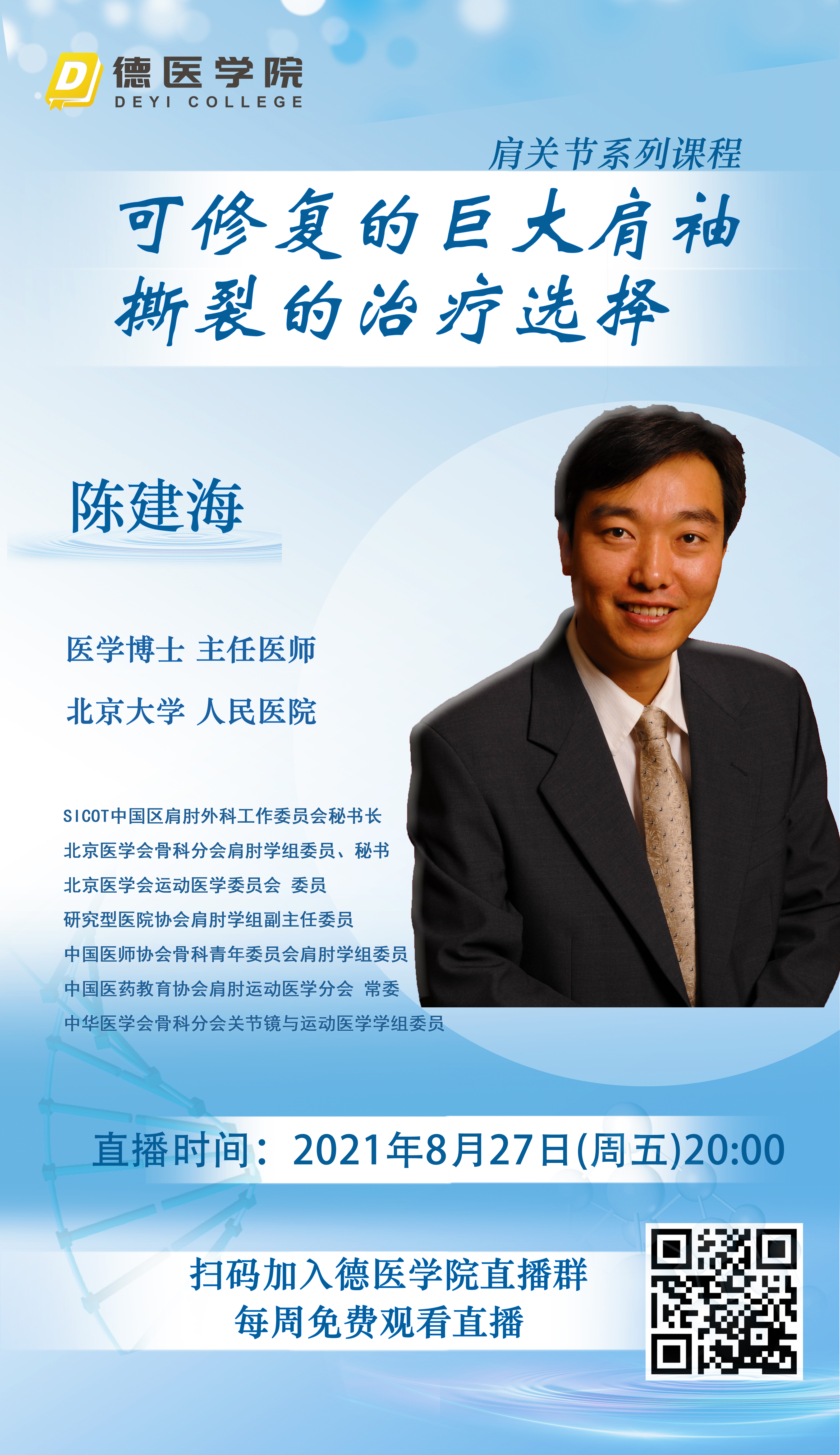 由北京大学人民医院的陈建海主任来授课:肩关节系列课程:可修复的巨大肩袖撕裂的
